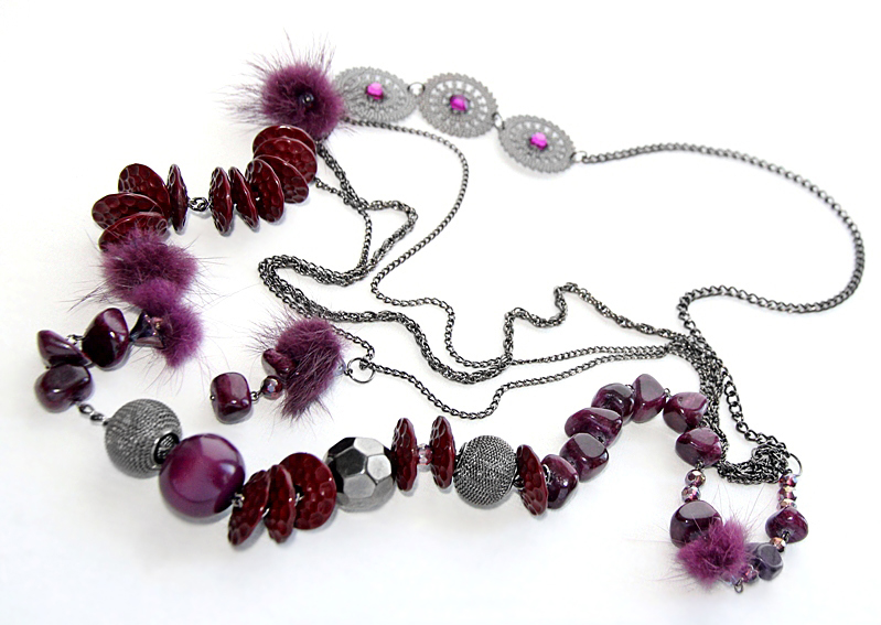 NB! Tegemist on re-disainitud tootega, milles lihtsale valmis kolmekihilisele kaelaketile on neljandaks kihiks juurde lisatud väga paljude erinevate (katkiste) ehete omavahel värvilt kokkusobivaid detailide.
