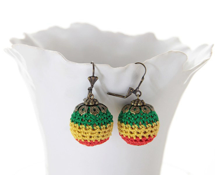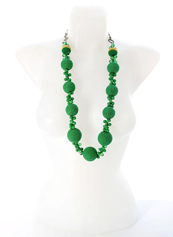 Heegeldatud helmeste sees on vahtplastist ümmargused detailid, mistõttu helmed on väga kerged. Heegeldatud roheliste helmeste suurused on on 2,8 cm ja 3,2 cm, heegeldatud triibuliste helmeste suurus on 2 cm.