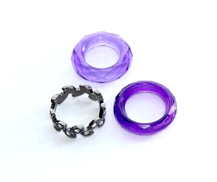 Salli kaunistuseks kasutatud rõngaste diameeter on 20mm ja need on sallilt kergesti eemaldatavad. Efektseid rõngaid saab mitmekaupa kanda ka sõrmustena.