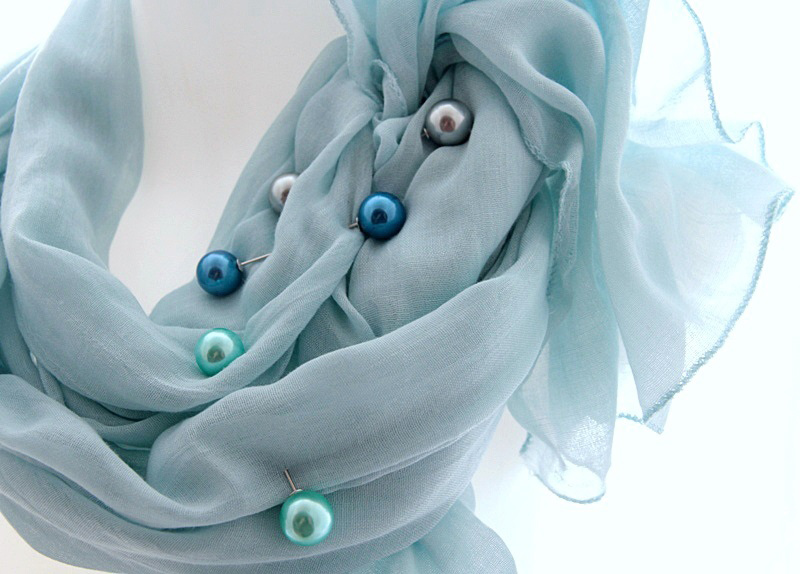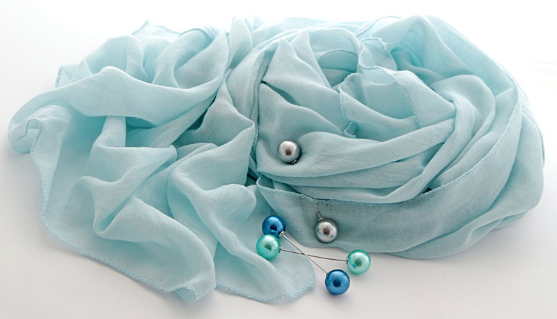 Helesinine pastelltoonis sall pärlitest kolme kaunistusnõelaga