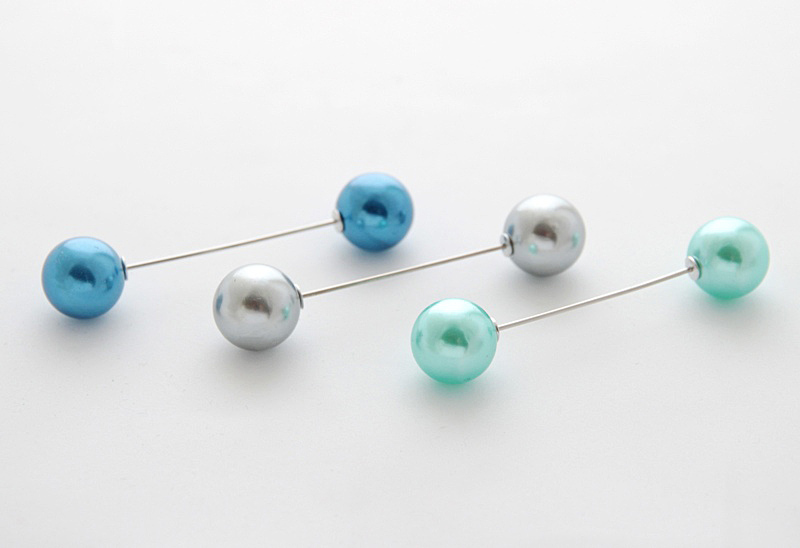 Komplekti kuuluvad kaks kaks helehalli, kaks sinist ja kaks rohekat mündivärvi akrüülpärlit suurusega 16mm. Pärlid on kinnitusnõela mõlemast otsast äravõetavad, mistõttu saab neid omavahel ka erinevalt kombineerida. Samuti saab ühendusnõelaga pärleid kasutada näiteks prossina rinnas või kinnitusnõelana kampsuni-pluusi-džempri revääril ja mansetil (vt erinevaid kasutusvõimalusi galeriis olevalt näidispildilt)