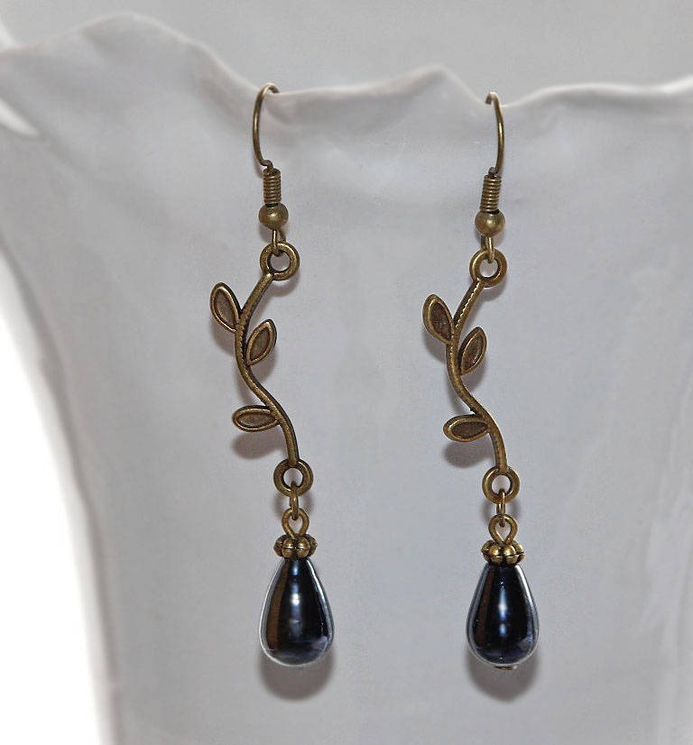 Pronksivärvi oksakujulise kaunistusdetaili ja tilgakujulise hematiidiga kõrvarõngad.