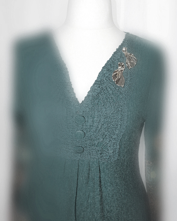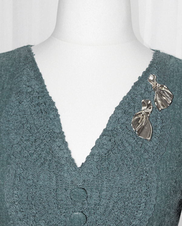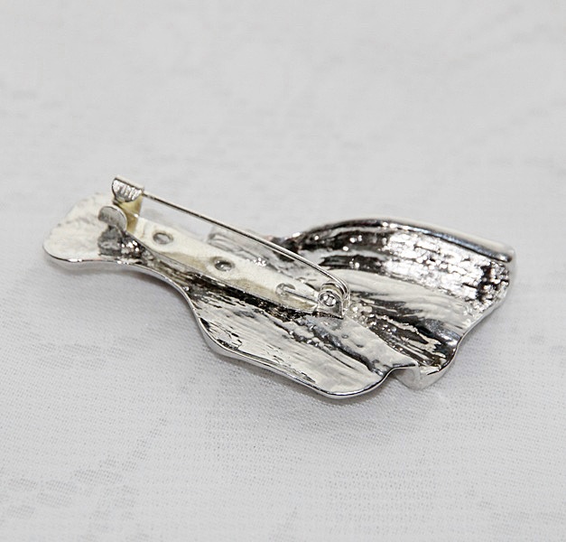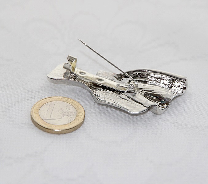 Voogavat kangast meenutava efektse disainiga hõbedavärvi metallist pross.