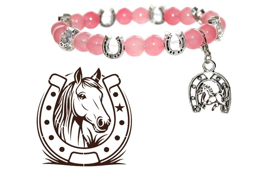 Hobuse ja hobuseraua motiiviga kerge metallripats on käevõrule kinnitatud väikese karabiinhaagiga ning käevõru saab kanda ka ilma ripatsita.