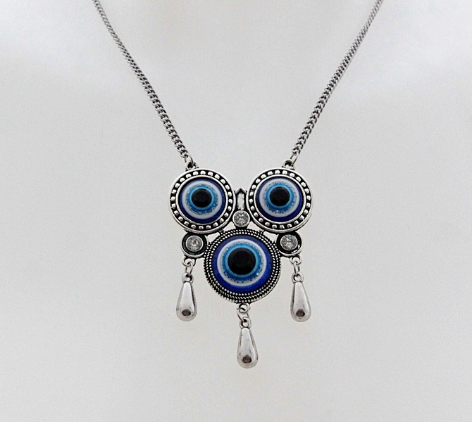 Väikeste tilgakujuliste ripatsite ja stiliseeritud kolmest silmast koosneva väikese kaunistusdetailiga antiikhõbedane kaelakett. Kaelaketi pikkus on 80 cm. “Silmadega” detaili mõõdud (ilma tilkadest ripatsiteta) on 4,5 cm x 4,5 cm