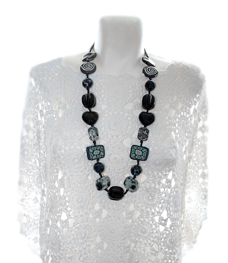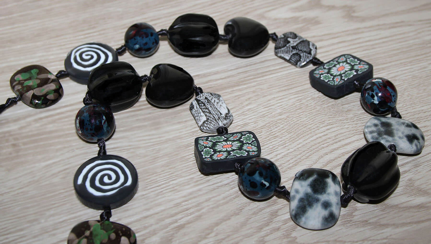 Kaelakee helmed on lükitud musta värvi paelale, et helmed “kokku ei jookseks” on iga helme vahele tehtud sõlmeke.
