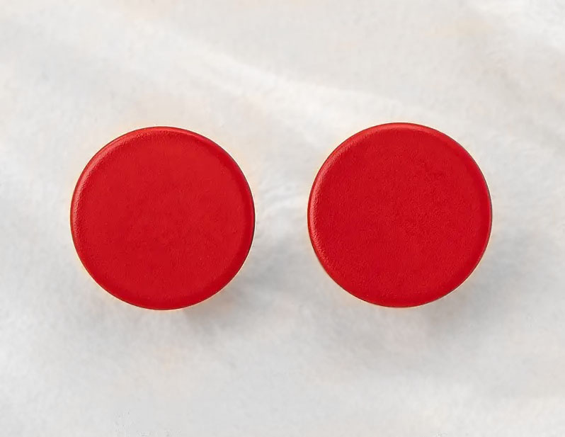 Polümeerkihiga kaetud mati pealispinnaga väikesed ümmargused punased kõrvarõngad klõpsuga.