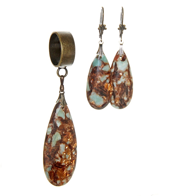 Kollase-pruunikirju sall püriidi-jaspise mosaiikkividest ehtekomplektiga