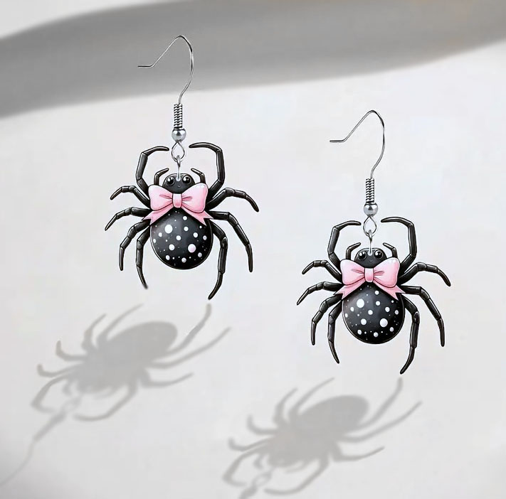 Vahvate roosade lipsudega ämblikukujuliste ripatsitega kõrvarõngad.