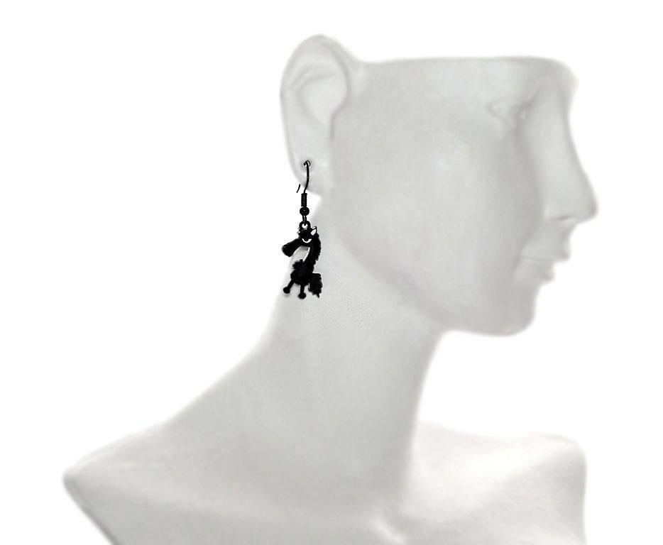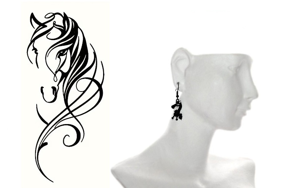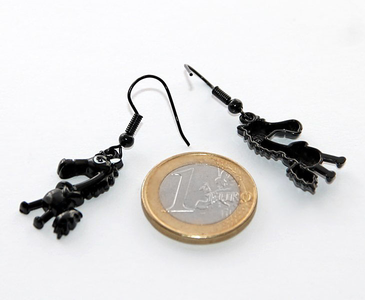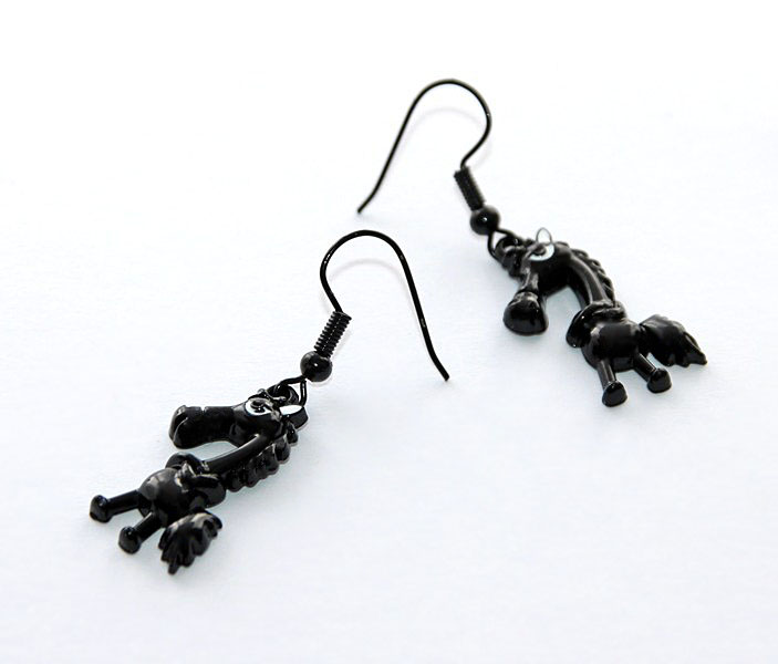 Humoorikalt arrogantse välimusega tillukese musta värvi hobusekujulise metallripatsiga kõrvarõngad.
