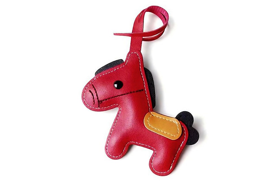 Tumepunasest kunstnahast 3D versioonis vahva väikese poni kujuline ripats.