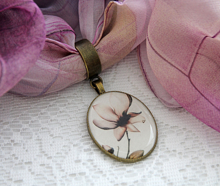 Lillades-beežides toonides sall kahepoolselt kantava vintage stiilis ripatsiga