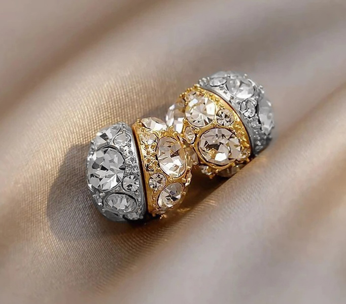Kaunilt sädelevate valgete klaaskristallidega kaunistatud hõbeda- ja kullavärvi metallist “poolikutega” kõrvaehted. Kõrvaehted kinnituvad kõrva külge magnetiga ning nende kandmiseks ei ole vaja läbi kõrva auke. Ühesugused mummud on nii kõrva peal kui ka kõrva taga. Mummu diameeter on 12mm (võrdluseks: 1-sendise mündi suurus on 16mm).