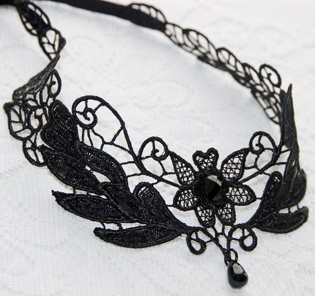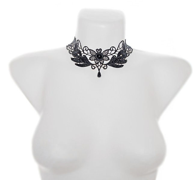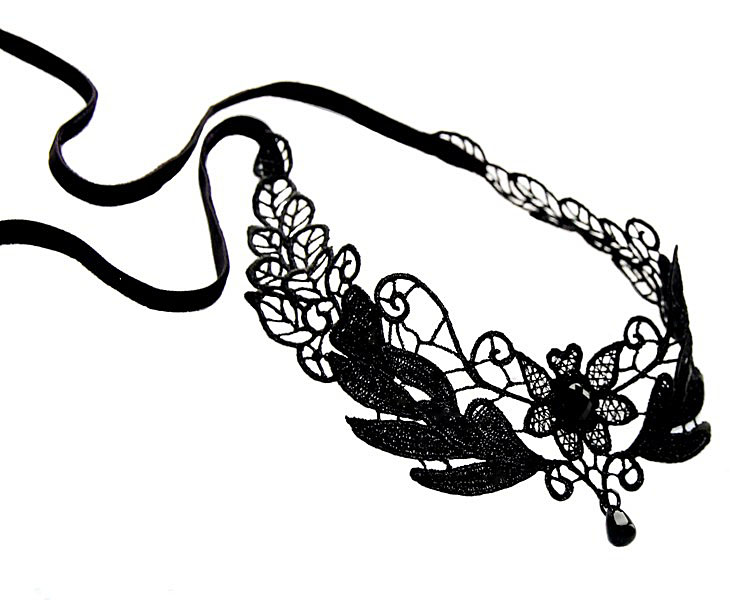 Musta pitsi ja väikese tilgakujulise ripatsiga kaelaehe