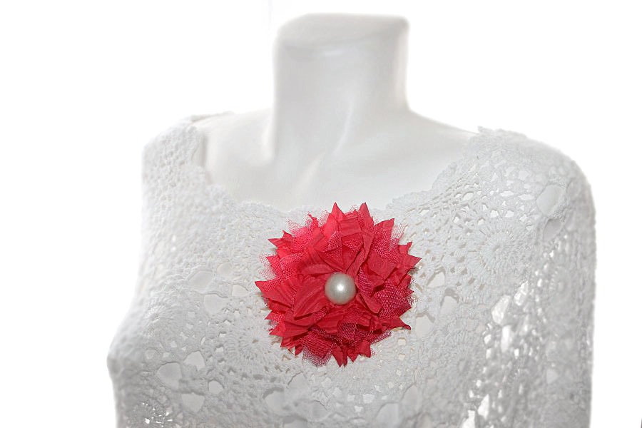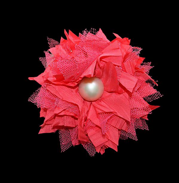 Tumeroosast viskooskangast ja tüllist krüsanteemiõie kujuline pross pärlkameega.