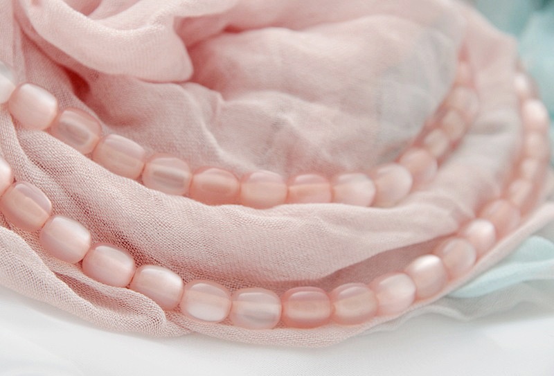 Sulanduvates pastelltoonides sall virsikuvärvi kassisilmakividest helmekeega
