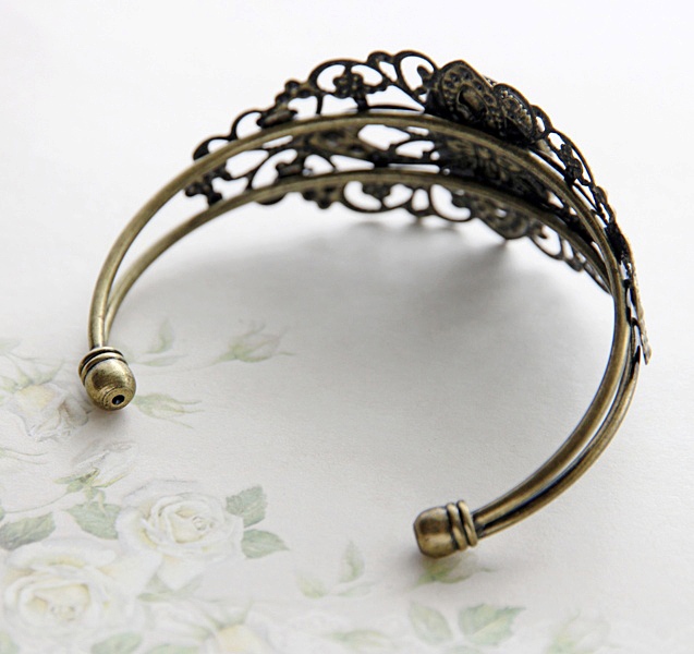 Pronksivärvi pitsiline käevõru punase roosimotiiviga kaunistatud musta kameega