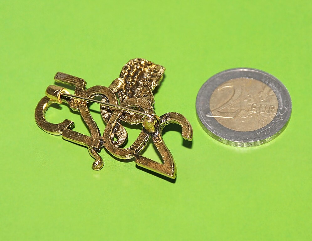 Antiik-kuldset värvi metallpross on üsna väike, prossi mõõdud on 3,5 cm x 4,5 cm.