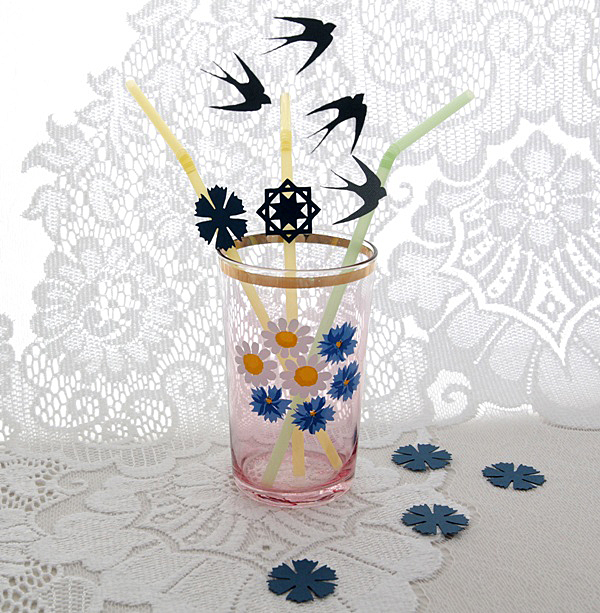 Joogiklaasi ja/või -kõrre kaunistus: pääsuke – 2 tk; rukkilill – 2 tk; muhu mänd – 2 tk