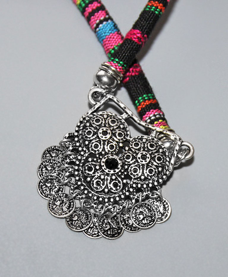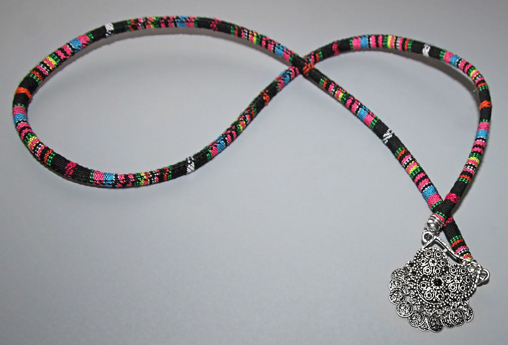 Triibukangast paela ja väikese etno stiilis antiikhõbedase metallripatsiga rahvuslikus stiilis kaelaehe.