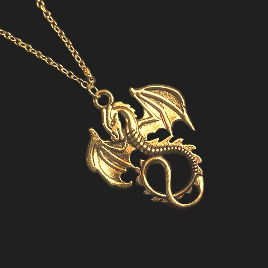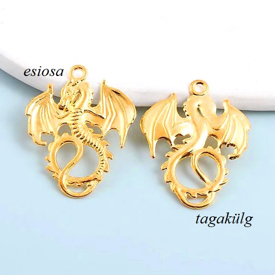 Reljeefse pinnaga väike kullavärvi draakonikujuline metallripats. Ripats on üsna väike ja kergest alumiiniumsulamist ning sobib hästi kõrvarõngaste valmistamiseks.