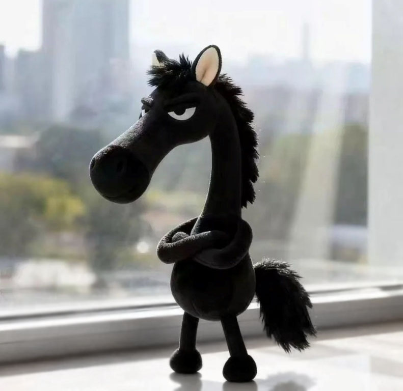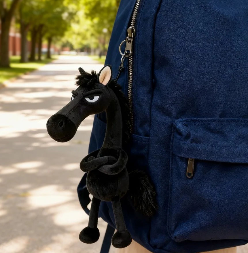 Pehmest mustast plüüšist humoorikalt arrogantse välimusega hobusekujuline suur ja vahva ripats.