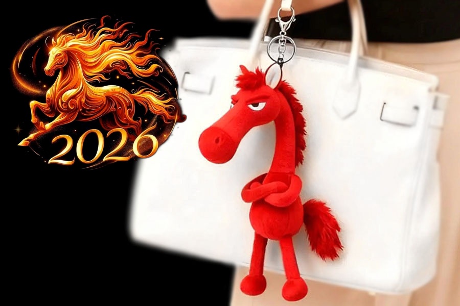 “Hobuse” küljes on suuremat sorti hõbedavärvi karabiinhaak koos keti ja rõngaga, millega saab vahva ripats-hobuse kinnitada nii koti külge kui ka kasutada võtmehoidjana.