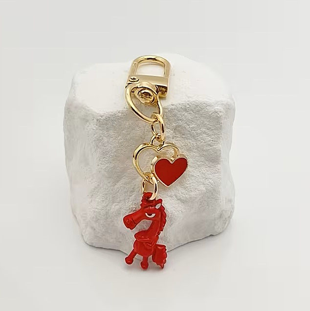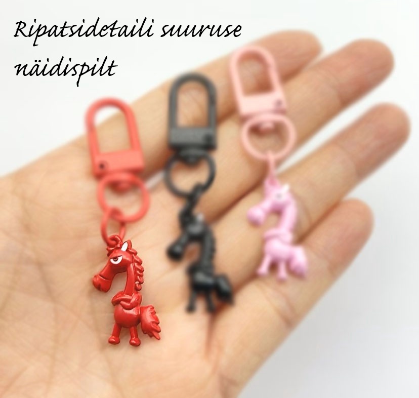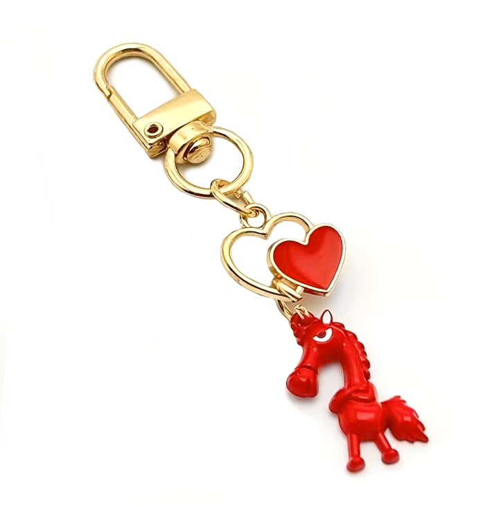 Ripatsi küljes oleva kullavärvi karabiinhaagiga saab väikesemõõdulise toreda südamekestega “hobuse” kinnitada lisaks erinevate kottide ja võtmehoidjate külge ka näiteks läbi tõmbluku aasade riiete või ka mobiiltelefonide külge.