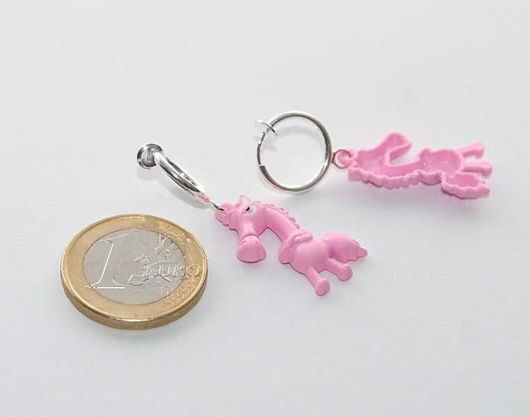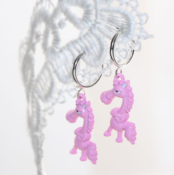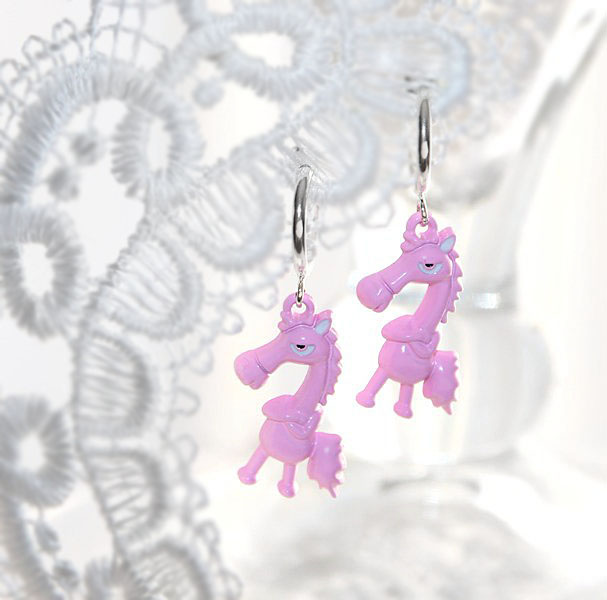 Rõngaste külge on kinnitatud humoorikalt arrogantse välimusega väike roosa hobusekujulise metallripats. Ripatsi mõõdud on 2,5 cm x 2,5 cm.