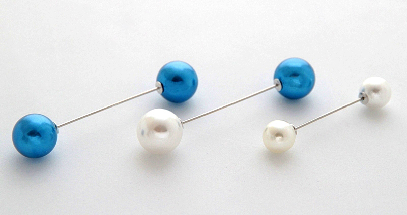 Komplekti kuulub kolm sinist ja üks valge akrüülpärl suurusega 16mm ning kaks väiksemat valget pärli suurusega 12mm. Kinnitusnõelad on erineva pikkusega – kaks nõela on pikkusega 7 cm, üks 5 cm. Pärlid on kinnitusnõela mõlemast otsast äravõetavad, mistõttu saab neid omavahel ka erinevalt kombineerida. Samuti saab ühendusnõelaga pärleid kasutada näiteks prossina rinnas või kinnitusnõelana kampsuni-pluusi-džempri revääril ja mansetil (vt erinevaid kasutusvõimalusi galeriis olevalt näidispildilt).