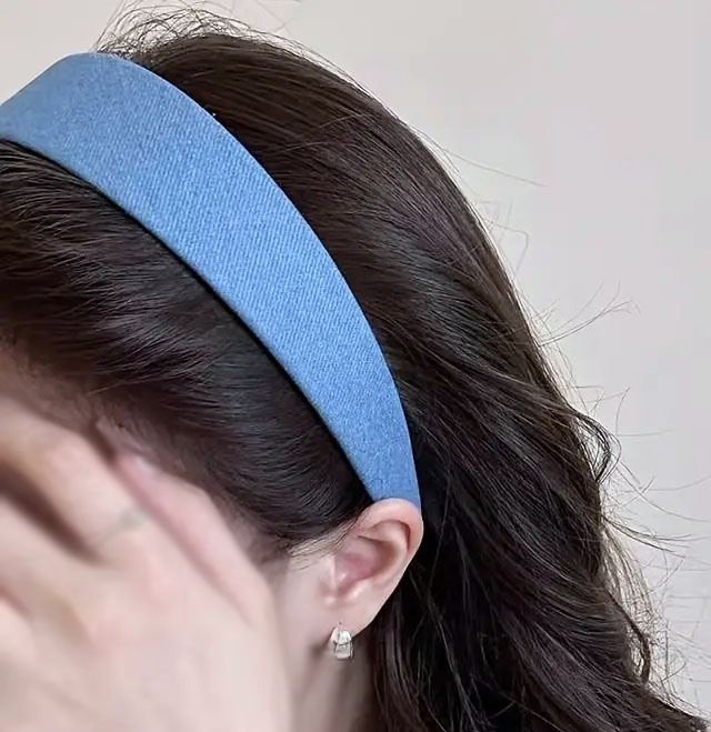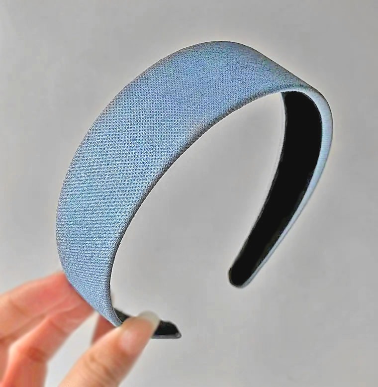 Helesinise teksakangaga kaetud plastikust lai peavõru.