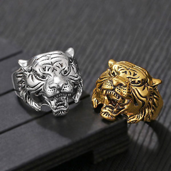 Tiigri pea kujuline kullavärvi efektne metallsõrmus. Sõrmus on kvaliteetsest ja tugevast (kriimustustele vastupidavast) lakitud pinnaga messingist.