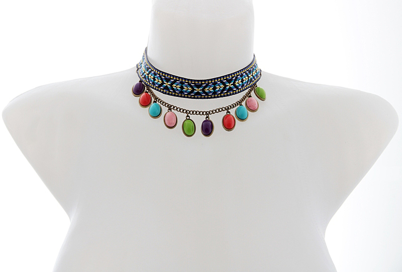 Värviliste kameede ja kirju paelaga choker-stiilis kaelakee