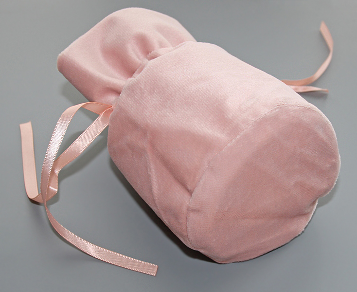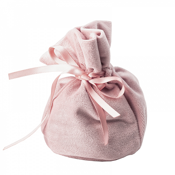 Kaunist õrnroosast sametjast ja siidiselt pehmest veluurmaterjalist ehtekotike paelseosega. Kotikese “suu” on kinnitõmmatav ning lipsuks seotav kahe peenikese atlasspaelaga.