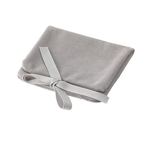 Elegantne ja kvaliteetne hallikasbeežist veluurmaterjalist väike paelseose ja klapiga ehtekotike. Kotike on õmmeldud topeltkangast (sees ei ole “hargnevate äärtega” õmblusi), peal topeltkangast tasku.