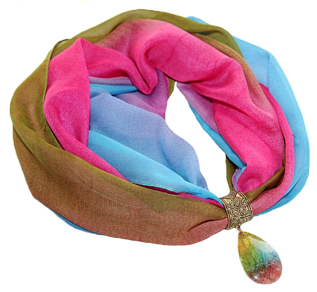 Vikerkaarevärviline rull-sall värvilise tilgakujulise ahhaatkivist ripatsiga