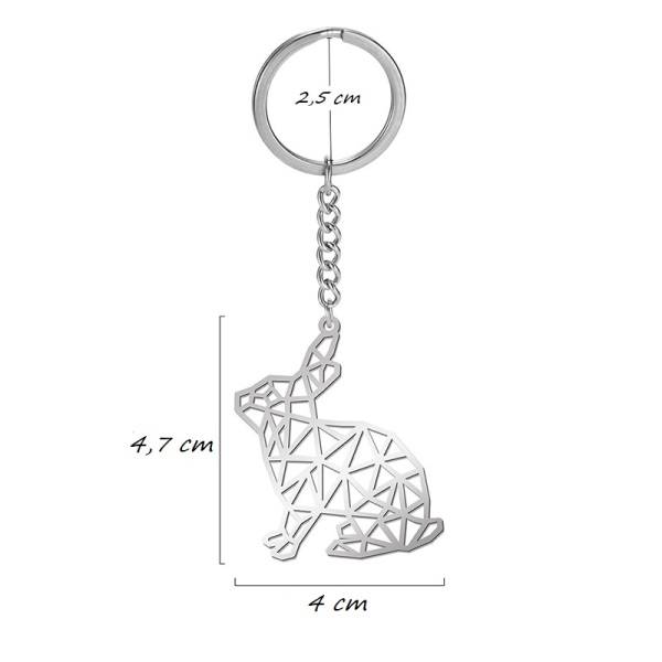 Kvaliteetsest kirurgilisest terasest võtmehoidja origami stiilis jänesekujulise “õhulise” ripatsi ja ketiga. Rõnga läbimõõt on 2,5 cm, ripatsi pikkus koos ketiga on 7,5 cm. Stiliseeritud jänese suurus on 4 cm x 4,7 cm.