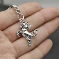 Keti külge kinnitatud perutava, tagajalgadele tõusnud hobuse kujulise metallripatsiga väike hõbedavärvi võtmehoidja.