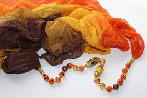 X Tumehall trikotaažist sall värviliste puuhelmestega