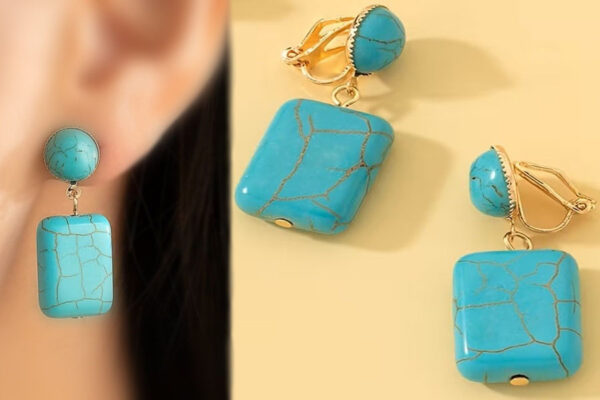 Klõpsuga kõrvarõngad kandilise türkiiskiviga