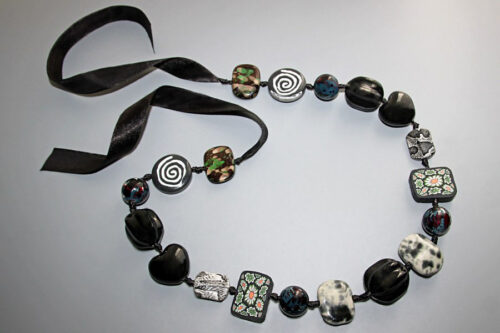 Keraamiliste helmeste ja puidust detailidega kaelakee